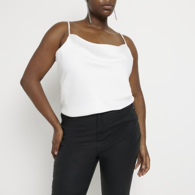 River Island Womens Plus White Satin Cowl Neck Cami Top
