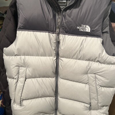 The North Face 700 Down Puffer Vest zip Gray Goose Down Mens Size M Medium hood | eBay