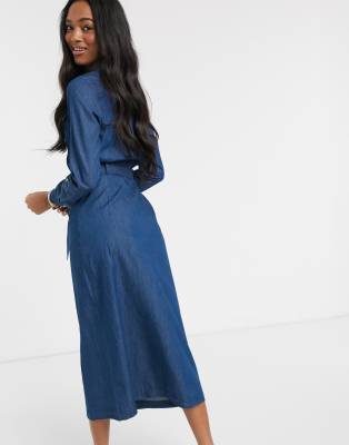 Warehouse denim belted midi shirt dress